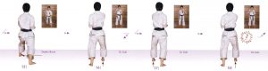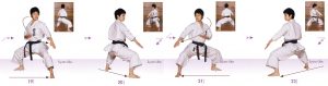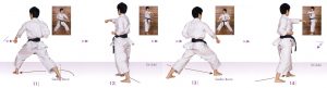 Все начинается с первого движения — поворота влево с ударом учи-отоси уке в некоаси-дачи, который должен быть мощным. Коси мавари (вращение бедрами), которое одновременно придает скорость и силу повороту, а также самому удару. Третье движение Хэйан Нидан предполагает быстрый переход от дзэнкуцу-дачи к мото-дачи во время выполнения ути-отоси уке. Это пример принципа куссин (屈伸) — сгибаться и разгибаться или приближаться и отступать, что необходимо делать быстро, точно и сохраняя правильную осанку. Еще раз повторю, что коси-мавари (вращение бедрами) — ключ к скорости и силе в этом движении. После поворота влево с гедан-барай исполнитель делает три шага вперед. Первые два выполняются с помощью агэ-укэ, а третий — с помощью ванто ути (удара предплечьем). Разница между агэ укэ и ванто ути едва уловима и в основном зависит от духа (кихаку): несмотря на то, что они почти идентичны по внешнему виду и механике выполнения, ванто ути должен наноситься с силой (кирёку) и целенаправленно (кимэ) как решающий удар, который повергнет противника. Эта серия движений демонстрирует, что одна и та же техника каратэ может служить разным целям — как для атаки, так и для защиты — в зависимости от того, как она применяется.